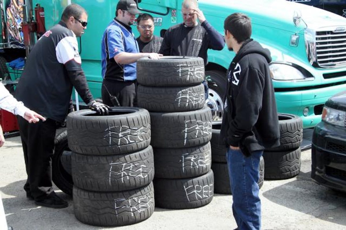 The amount of tire use in drifting is not surprising. A set of rear wheels used to run on the course setup at Evergreen Speedway lasts approximately two laps. In practice Conrad was running his rear tires for three laps but explained the third lap had so much traction loss from the tread that it wasn’t a full out run.