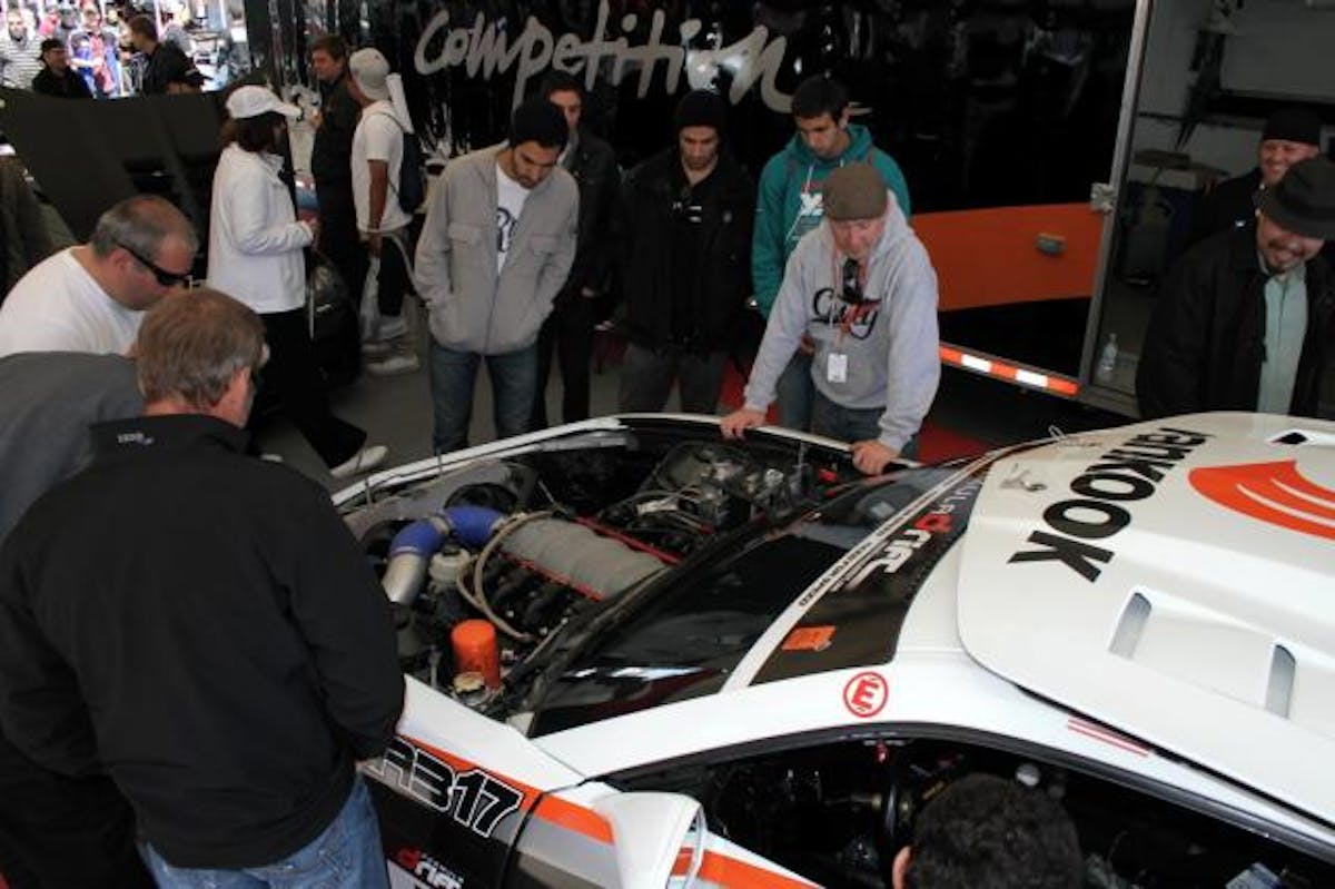 Spending most of my time in the garage pits with Conrad and his Hankook tire supporters, I was able view how hands-on he is with the mechanics and setup of his drift car. I saw him troubleshoot an alternator, starter and steering pump – while some forms of racing allow the driver to lounge in air-conditioned comfort, most of the drivers on the FD circuit are part-time mechanics out of necessity. Many of the issues are heat related and they always seem to happen at the worst of times. This did not slow Conrad down; when necessary he got in his truck and drove to the parts store to make last minute replacements. I saw a diehard racer who understands the demands of his race car and is committed to making it right at all costs. Whatever it takes and however late the task will take him, this driver doesn’t sleep or stop until his Camaro is in full and proper working order and ready for battle.
