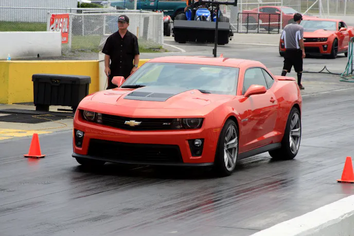 Both the manual trans and automatic equipped ZL1s have the drag strip launch control programed in Mode 5, but they each require a very different technique. At the drag strip, we were privileged enough to be able to test both a manual and automatic, and got a taste of what it takes to launch each of these very different beasts. NHRA drag racing legend, Frank Hawley was on hand at Indy, and gave us some tips on how to achieve the best launch with each car before they turned us loose with the ZL1’s.