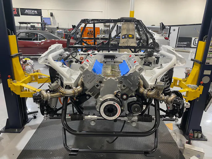 Koza started with an LS3 block, which was machined by AES and assembled in house. The block is filled halfway and also sports a billet main girdle for added rigidity. A Callies crankshaft was installed in the block with Wiseco Boostline Rods connected to a set of “high compression” Diamond Pistons. A custom 9,000+ rpm capable camshaft designed by Martin Smallwood is also nestled in the short block. Other upgrades include re-worked M311 Frankenstein heads by AES and Martin Smallwood, a Ron ShearerFab air-to-water intercooler, Holley Hi-Ram Lower, Johnson Lifters, SCE Vulcan Ring Gaskets, and a set of Brian Tooley Racing (BTR) billet valve covers.