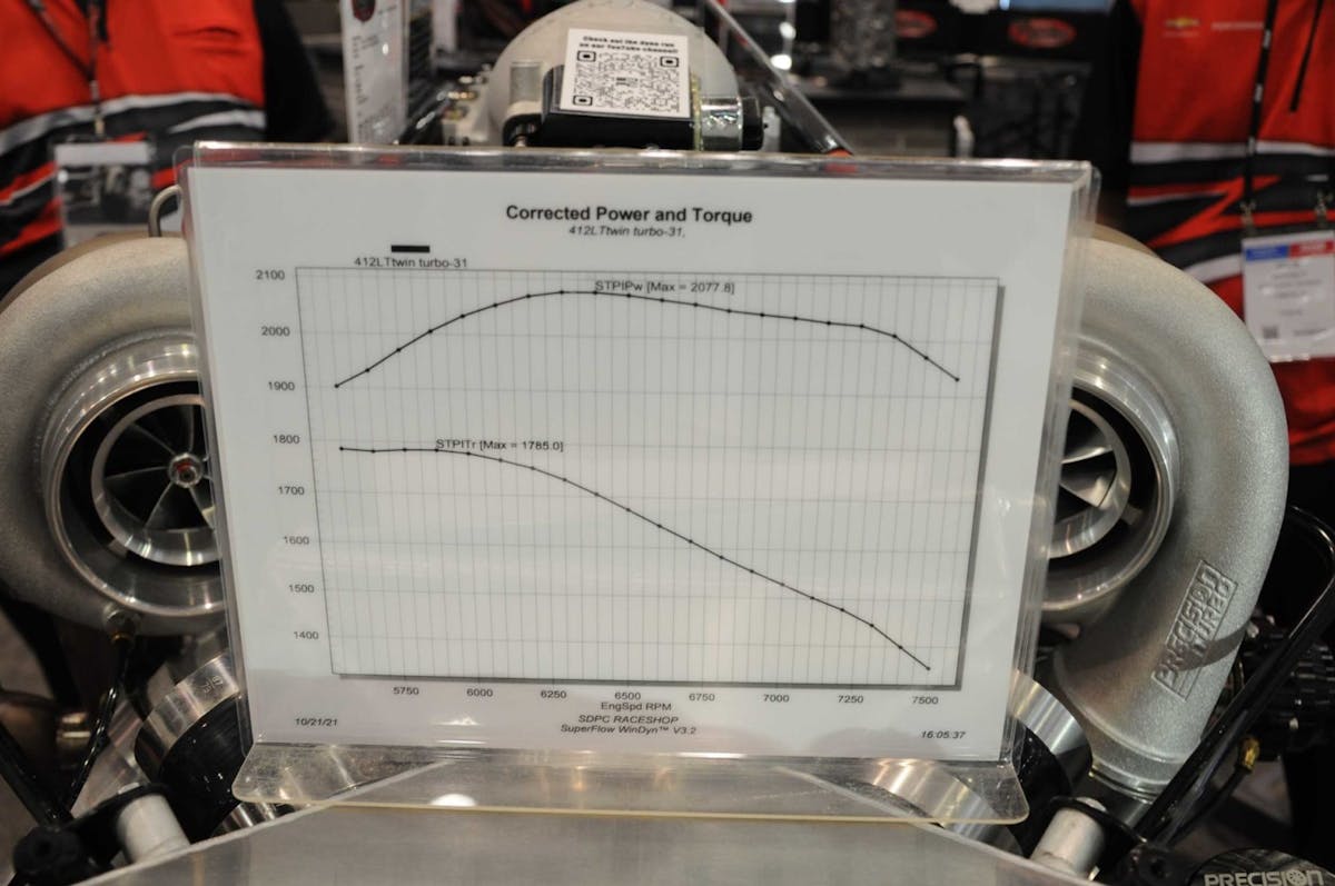The dyno shows 2,077-hp and 1,785 lb-ft of torque all the way to 5,900 rpm!