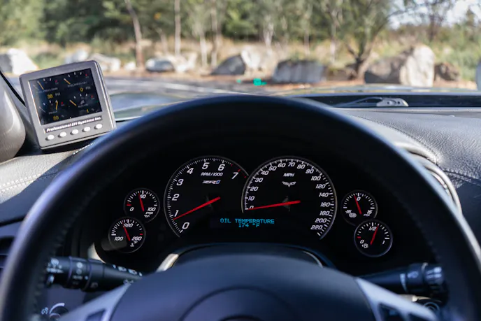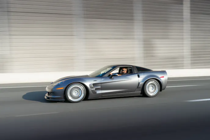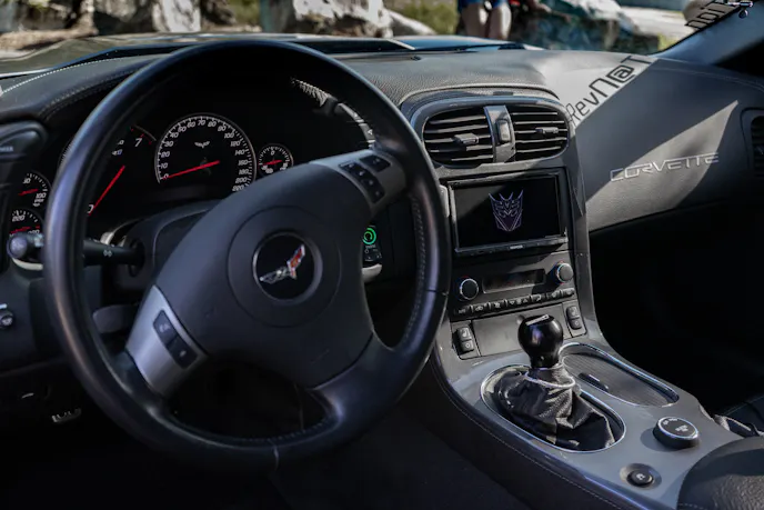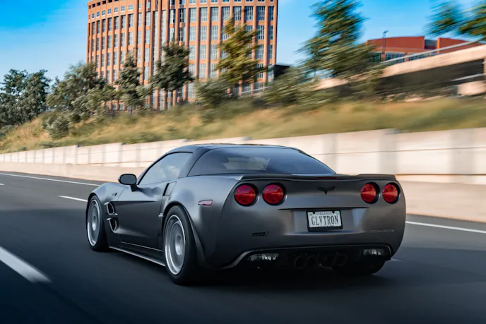 Galvatron’s rollers are a set of HRE Classics 303 forged wheels, which sit in a custom, 19 x 10.5-inch front, 18 x 12-inch rear configuration. The front two alloys are clothed in 285/35/19 Nitto Invo tires, while the rears receive 325/35/18 Mickey Thompson ET Street R rubber. Brakes are a carbon/ceramic OEM setup, and the body has been wrapped in 3M Satin Metallic Grey by New Edge Wraps of Calvert, MD. That’s pretty much it for mods though. Everything else on this car is bone stock. From sway bars and seats to headlights and harnesses, this C6 is about as unmolested as it gets, which is probably why it’s been so damn reliable.