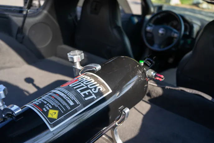 Capitalizing upon Galvatron’s newfound ProEFI capabilities, the boys installed a 2-kit system, with Nitrous Outlet’s blower spray bar handling the 200-shot, and a secondary, 100 horsepower shot resting atop the engine’s throttle body plate. Wonneman also built a custom return-style fuel system with a dedicated third pump just for nitrous, which he plumbed directly into the C6’s OEM fuel tank. It was now only safe to spray when using E85, but this also made things simpler due to the car having just one tank and a single source of fuel.