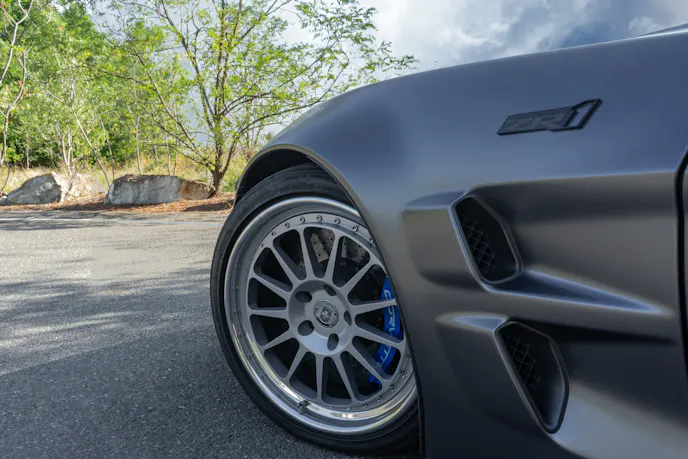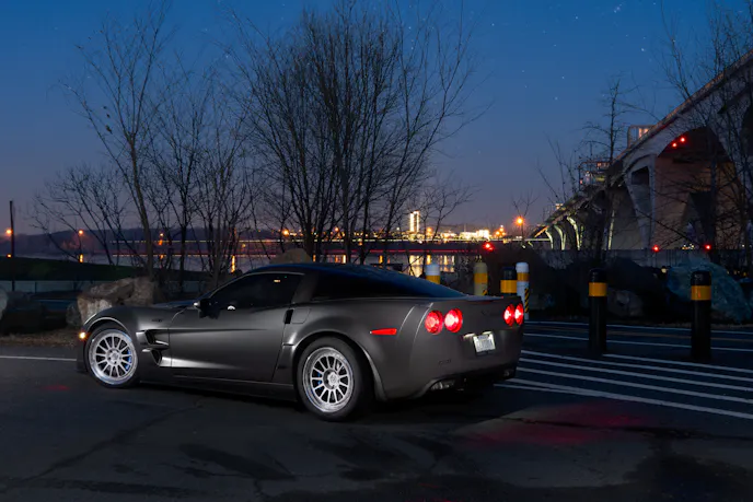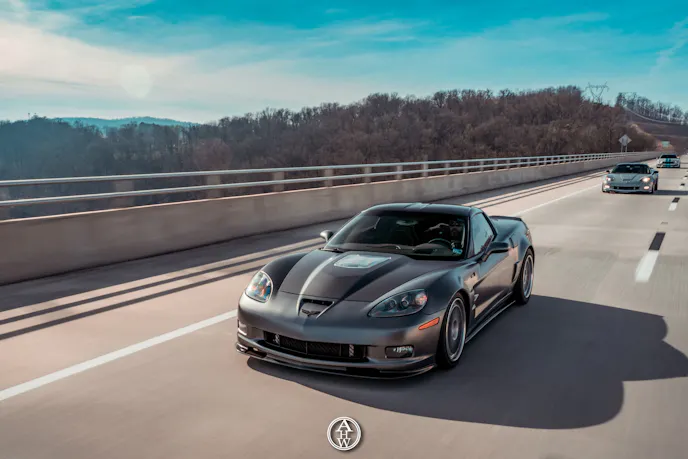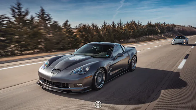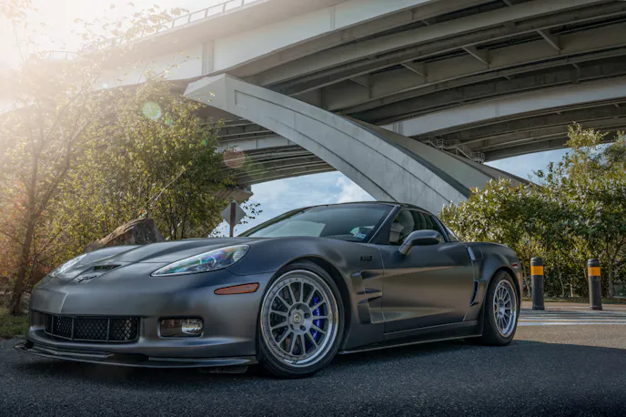 Less than a month after putting Megatron out to pasture, and “Galvatron” surfaced. With its low-mileage, minty-fresh physique, and unaltered ZR1 arsenal still intact, the 2009 C6 was too good to pass up. Awadallah tells us that when he took possession of the car, it had little more than a Lingenfelter snout intake and a slightly smaller upper pulley attached. It was at this point that good friend and mechanic, Matthew Wonneman, agreed to add a few bolt-ons, like some American Racing Headers 2-inch headers, and a Billy Boat Fusion 3 exhaust system with a catless X-pipe. He also ordered a set of HRE wheels and had Andrew from Complete Street Performance in West Chester, Pennsylvania give the vehicle a quick tune.