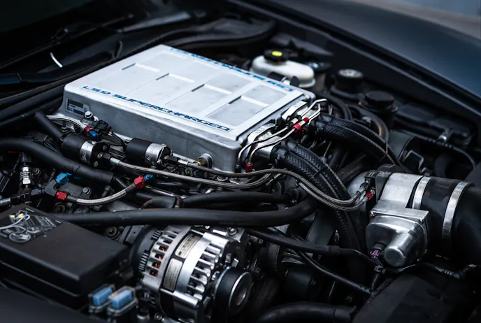 February of 2018 brought with it PRC 260cc heads, a GP Tuning Stage 4 ZR1 camshaft, a Kong Performance ZR1 intake and snout (currently the largest on the market), a 2.35-inch ZPE Griptech pulley, and a DC Power 270-amp alternator. This last upgrade was made to guarantee that there would be enough power for the car’s new ECU and electronics, as well as Galvatron’s freshly installed nitrous system from Nitrous Outlet.