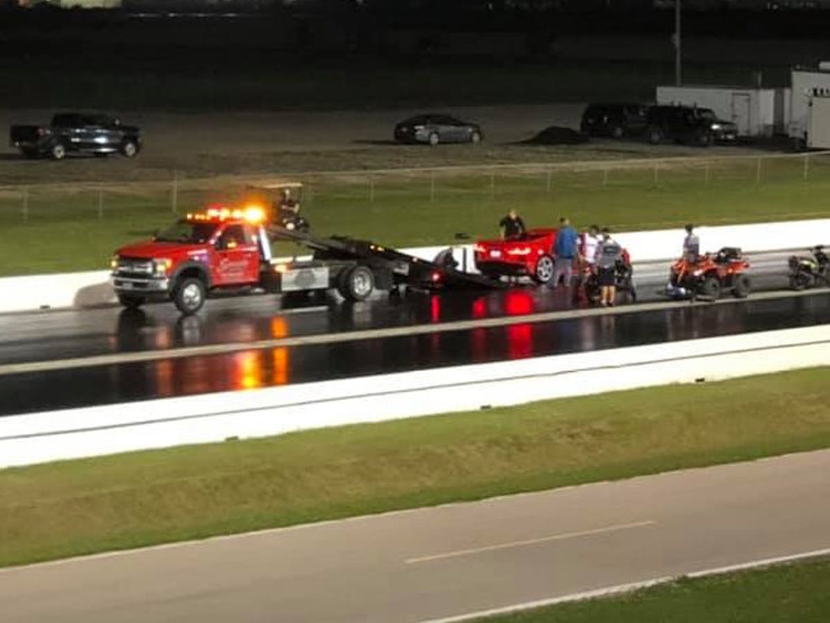 The first run was as the General intended, naturally-aspirated. Leaving off of the foot brake without launch control garnered a 12.11 at 118 mph. With just a few quick twists of the Nitrous Express “golf bag”, a 100-shot of nitrous stood at the ready. Apparently though, the C8 was slightly out of shape after sitting in the assembly plant’s parking lot for so long. Hitting the spray in first put the car into a tailspin, which is best described by the folks at LG. “The car didn’t like spraying in first and would not shift to second until we let off the nitrous and the throttle,” a spokesperson for the company posted on their Facebook page. Even so, the car still ran a 12.09 but at 124.