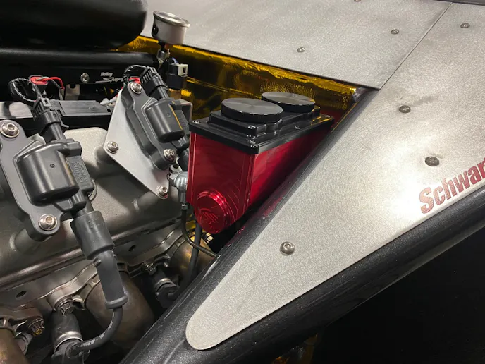 Dale tells us that despite all of the stellar support from Baer Brakes, there was one issue that could not be overcome. The little Skart had been outfitted with a 14.4-inch rear rotor because Baer didn’t have anything smaller at the time. This means that the 2,400-pound exo-kart runs rear brakes designed for stopping 4,500-pound automobiles! As for the front brakes, a slightly smaller, 14-inch rotor with 6-pot calipers was available, an upgrade that Schwartz Performance apparently installs on every G-Machine chassis it manufactures.