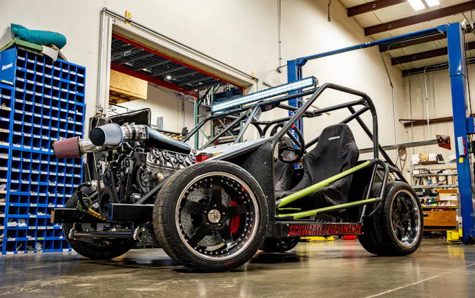 The guys over at Schwartz PerfoSchwartz Performancermance apparently play a lot of Mario Kart in their spare time. But where Nintendo’s iconic racing game arms its vehicles with balloons, bananas, tortoise shells, and lightning bolts, this kart prefers to pack LS power. Commonly known as the Schwartz Performance Skart, this little beast sports parts from companies like Baer Brakes and Ultimate Headers, because sometimes the race to the finish requires some helping hands and the best components in the biz.