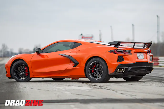 Mark made the call to Nitrous Outlet and ordered an LT nitrous plate and then installed it on the C8. The only modifications made were the addition of 100-octane racing fuel, tires, wheels, and 50 horsepower worth of nitrous.