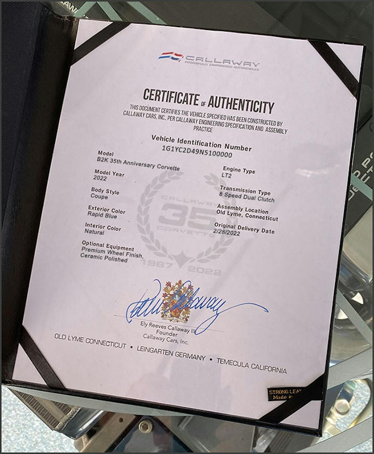 When ordering your B2K 35th Anniversary Edition Callaway Corvette