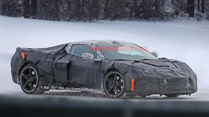 Previous models have been spotted roaming around on everything from a mismatched set of shoes to a set of wheels that look akin to snowflakes. We don’t know about you, but none of those variants have really struck our fancy until this new set appeared. Clad in black, the new wheels take on the form of an angular, split-spoke design. The spokes taper toward the end giving them a look reminiscent of the “thin spoke” wheels first seen back on the C5 and C6 Corvette. However, a test mule was spotted sporting the standard “snowflake” wheels, so owners may have an option here.