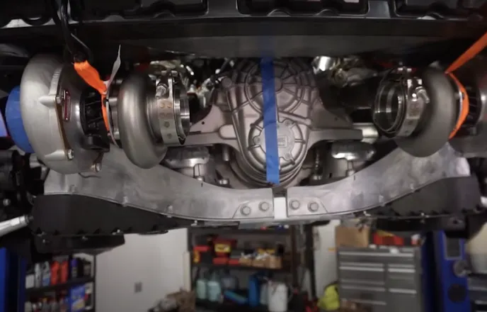 Unlike some of the other turbo videos on YouTube, this one gives us some insight into the design as well as the products used. The turbos selected for this installation are two 62/66 Precision Turbos that will be rear-mounted under the bumper of the C8 eliminating the mufflers on the car. The beauty of this layout is that the exhaust will “X” coming off the turbos, and the spent gasses will exit at the factory tip location. Another nice feature for those of you that are concerned with emissions, the stock cats will be retained. Special flanges were produced and purchased so that this kit will bolt-on to the existing hardware of the Corvette. This means, if you decided to sell the car or convert it back to factory specifications, the turbo system could be removed, and the factory mufflers can be reattached easily. Alex Peitz of Peitz Performance says in the video, “The whole idea of this kit is that you don’t have to cut anything. You don’t have to make any compromises in terms of fit or finish.”