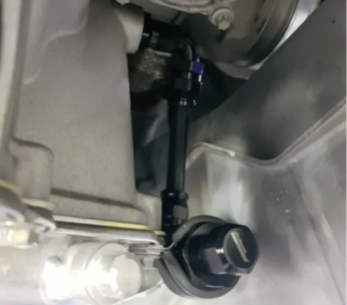 The last thing we installed before hitting the track for our baseline testing was a premium high-performance metal mesh reusable transmission filter and filler kit from Dodson Motorsports. If you’ve ever tried to change the transmission fluid in a C8 or simply overfill it slightly for track use, then you are aware that the only possible way of doing either task requires the removal of the factory airbox. To remedy this issue, Dodson Motorsports created an assembly of hoses and fittings along with a one-way valve that, once installed on the transmission, allows you to perform fluid changes and fills without touching the factory airbox.