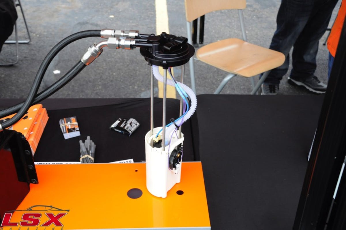 The Deatschwerks crew was at the show with an orange turbo LS-swapped BMW that was getting a lot of attention. The Bimmer was not the only item in the booth that was drawing a crowd. Deatschwerks had a bunch of new products that are coming to market. On display was their brushless fuel pumps, fuel rails, as well as an all-new DW400 drop in fuel pump module for the 1999-2009 GMC and Chevrolet 1500 trucks.