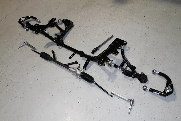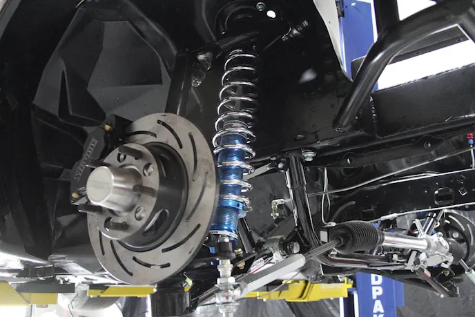 Getting all the power from our ProCharged 388ci LSX to the ground effectively at the starting line is a group effort. That effort starts with the front suspension setting everything in motion to get the weight to the rear tires, and getting them planted with just the right amount of force. We’re confident that we’ve put together a serious stock-based front suspension that will help us transfer weight the way we need to, maintain the proper geometry, and even drop more than a few pounds in the process.