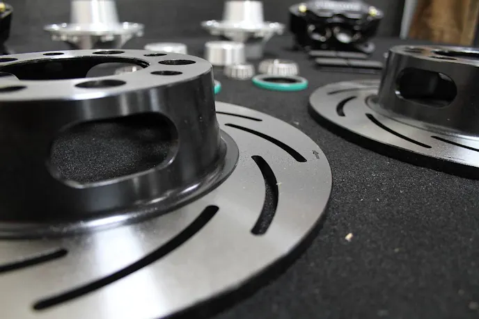 - Forged aluminum calipers with staggered 4-pistion design for improved pad wear