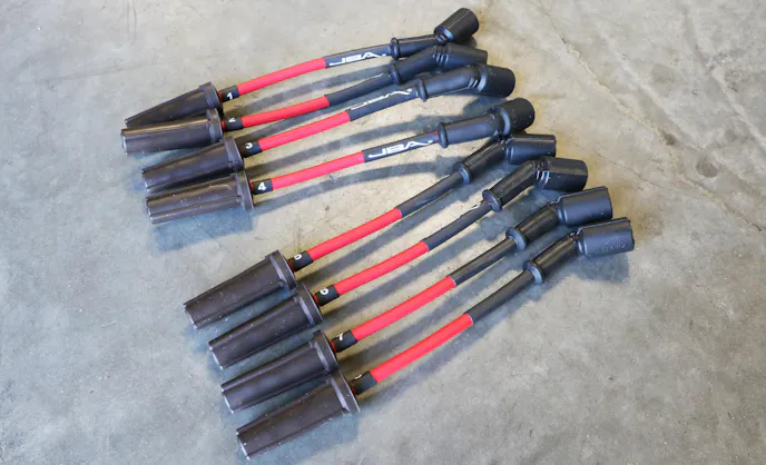 We removed the intake tube and plug wires to make extra installation room on the driver side. We were a bit impatient ripping off the plug wires, and after 60,000 miles, the old OEM plug wires fell apart in our hands. No problem. We ordered a set of new PerTronix plug wires and slapped those babies on once both headers were completely installed.