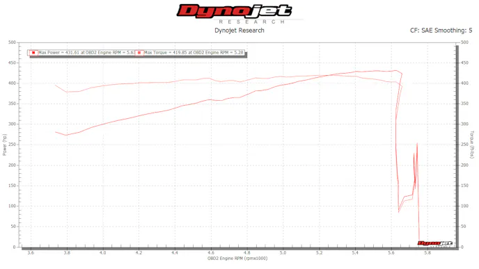 With all of our bolts tightened down from our project, it was time to strap down the Sierra onto our chassis dyno and see if our hard work would pay off in the horsepower department. The truck sounded great at wide-open throttle with the JBA exhaust. We didn’t hear any pinging in the engine, thanks to the VP Racing Fuel Octanium. We did each of our pulls in third gear. What we found was that our horsepower went up from a 419 horsepower baseline to 431 horsepower. Of course, there is nothing wrong with having 431 horsepower.