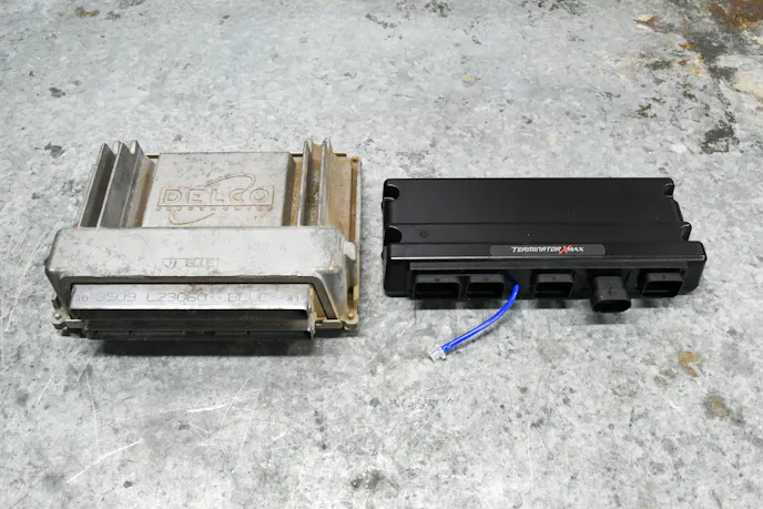 The Terminator X and X Max are both compatible with the new LT series engines, but at this time, the X Max will not operate anything more than a four-speed automatic transmission. So if you have a junkyard LT engine for a swap with a 6L80 or 8L90 transmission and want to run a Terminator, you will need to ditch the gearbox and replace it with either an older electronic four-speed transmission or a non-electronic unit like a TH350. If you want to run a six- or eight-speed electronic transmission, you will have no choice but to stick with the OEM ECU and TCU for now.