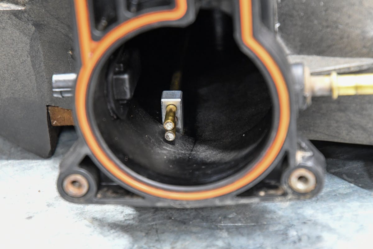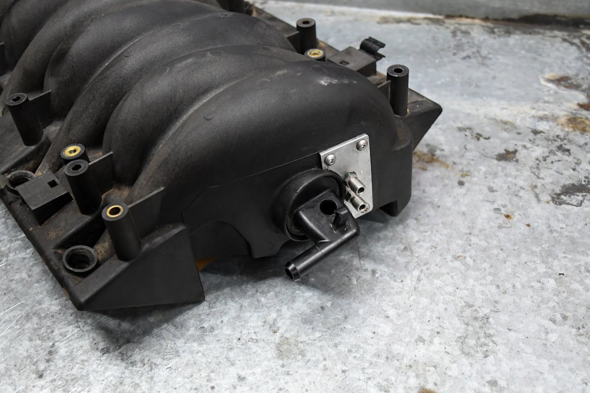 Another sneaky location would be to relocate the air temperature sensor to a different place that’s out of sight. With the sensor out of our way, we drilled and tapped an old sensor, and mounted the nozzle in plain sight. What’s fantastic about this location is nothing is out of place, and everything is as it should be. We like it just because it’s an obvious location that not many would think of utilizing.