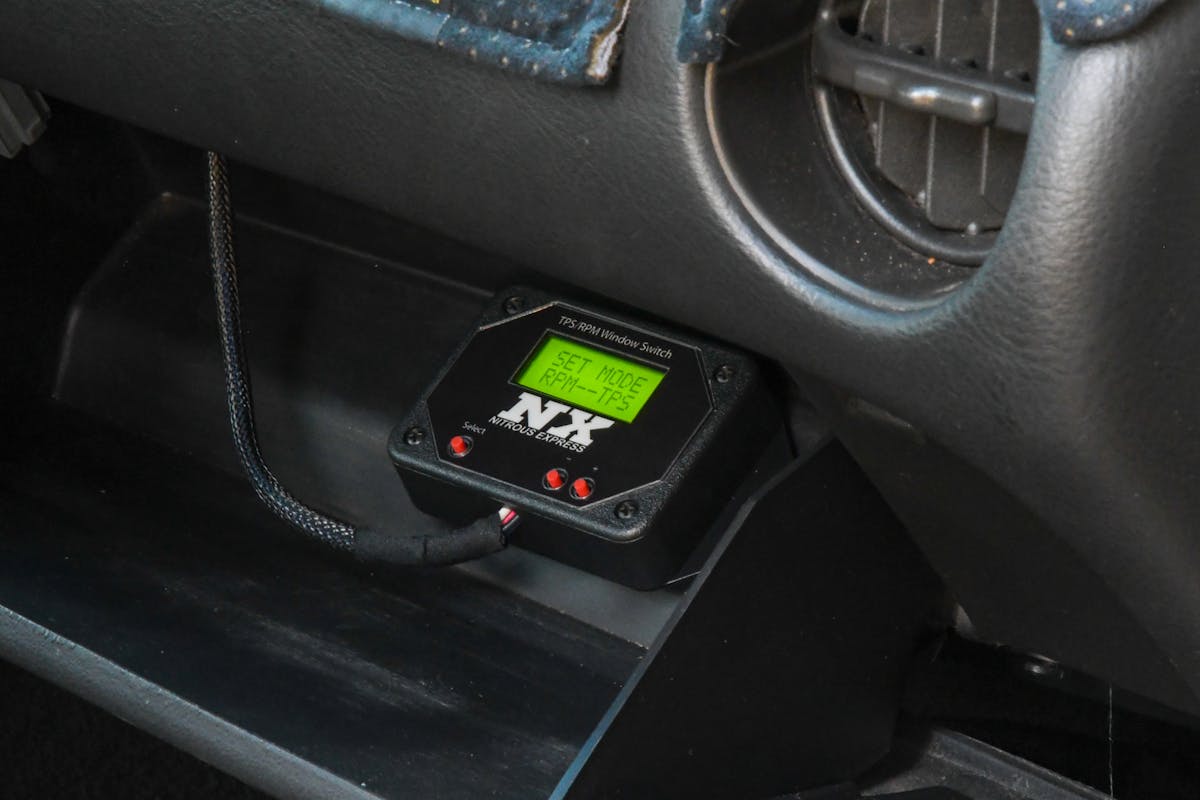 Since our car has a manual transmission, we wanted to install a window switch for added safety. However, window switches are not just for vehicles with standard gearboxes. Ryan said, “While window switches are important on manuals, they are great for automatic transmission vehicles, too. These units are user-adjustable and allow the racer/tuner to select an RPM “window” for the nitrous to be engaged, say 3000-6500 rpm, for example. When outside these parameters, the nitrous will disengage. This window will keep the nitrous from activating too low in the RPM range, which is very hard on engine internals. It will also keep the nitrous from coming on too high in the RPM range if the driver misses a gear or hits the rev limiter.”