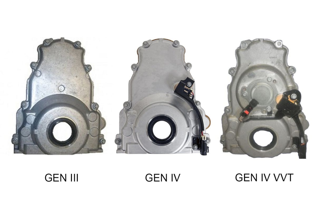 Variable valve timing (VVT) was not offered on the GEN III LS engines. However, it was an option on some Gen IV models but not all of them. Fortunately, even though the covers look similar, it’s relatively easy to identify if the engine is equipped with VVT, especially if the water pump is off the engine. If you’re looking at the engine from the front, a Gen IV will have a cam sensor on the right side of the cover. If it’s equipped with VVT, it also has a short harness that will plug into the camshaft phase actuator, also called a timing solenoid on the left.