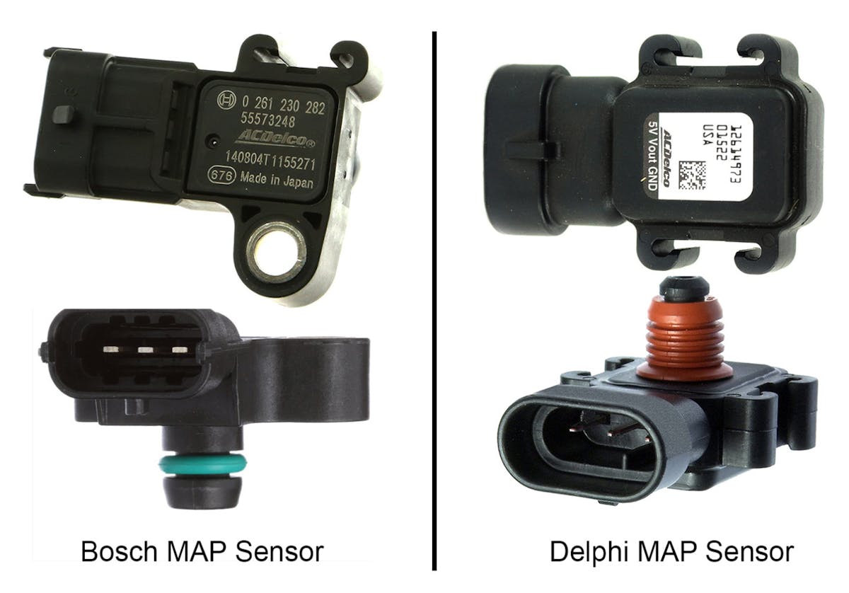 GM also used two types of manifold absolute pressure (MAP) sensors. These parts are easily identified because they are pretty different visually. The somewhat tubby Delphi MAP sensor snaps onto the intake manifold while the Bosch sensor has a hole where a bolt passes through, securing it to the manifold. These units utilize a different plug, so be sure and identify the one you have before ordering a harness.