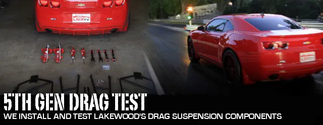 To get that quicker ET without adding any more power, we went to the drag suspension experts at Lakewood Industries. Since 1965, Lakewood has been manufacturing drag shocks, traction bars, and tons of other parts to make classic American iron better at the drag strip. Recently Lakewood has taken all the lessons they’ve learned in that 47 year time span and began applying them to the modern muscle cars of today, namely the 5thGen Camaro.