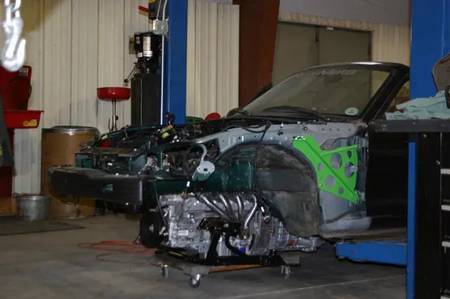 There are necessary modifications in order for everything to work properly, but once it is done you are left with a sleeper.  The transformation of the ’99 Miata from a 1.8L 4-cylinder to a ‘Vette powered beast requires some cutting, welding and tweaking a few parts, but the end result is sweet.