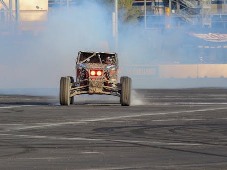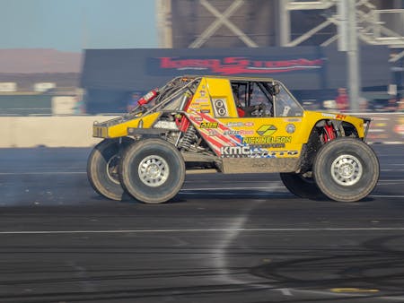 His run was a real crowd pleaser but it was still early in the event. With the bar set, several of the Ultra 4 vehicles took to the course and really gave us a good show. The MBRP/Nitto buggy was an absolute savage and showed everyone how a four-wheel burnout is done, coming perilously close to not only taking out a cameraman but yours truly, too. We all know that an element of danger is an important part of any good burnout.