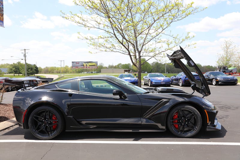 The new kid on the block this year is the ZR1 and many were in evidence throughout the parking lots surrounding the museum. Most were test mules wearing Michigan tags, chassis #002 was there as an Admiral Blue low-winged coupe. Nearly all color/body style/wing/wheel and badge combinations were on display in and around the museum and also at the NCM Motorsports Park on the other side of I65 from the Museum. For many ordinary Corvette owners it was their first opportunity to see the ZR1 in the flesh and the car met with almost universal approval, the only gripe being the big increase in price over the Z06.