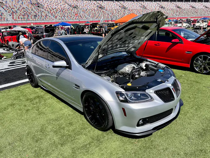 Across the street, Charlotte Motor Speedway was packed with over 400 cars representing both the AACA and over 50 local car clubs. One walk down pit road was enough to excite any fan of LS or LT power, with Camaros, GTOs, Corvettes, Trans Ams, and G8s making up a large majority of the entrants. The AACA component of Auto Fair includes judging of cars 25 years or older (yes, my friends, that now includes LS cars). In addition to being the spot for ride-alongs, both NASCAR garages were packed with special attractions, and there was even a Car Corral for enthusiasts interested in buying or selling.