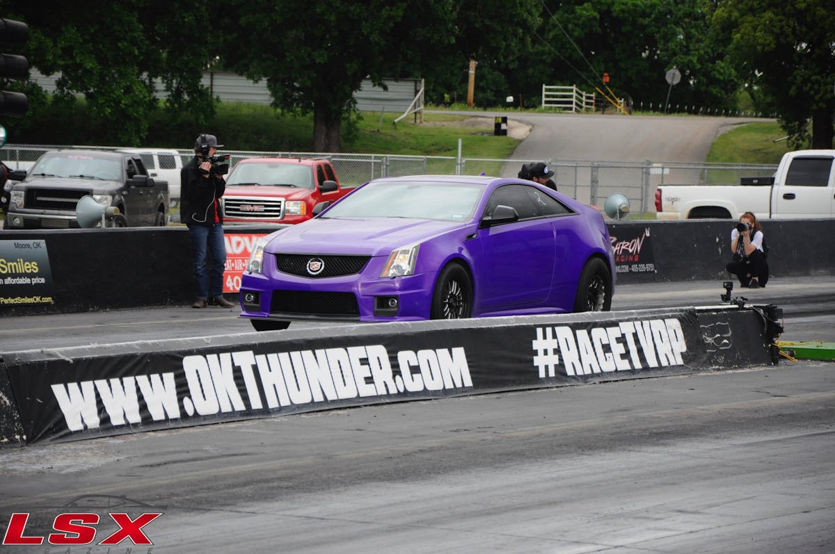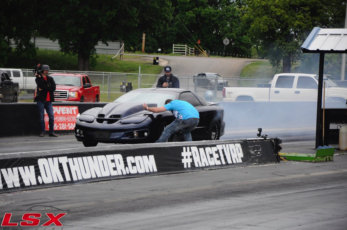 Day 2 of the event sent us south of Oklahoma City to the 1/4-mile track know as Thunder Valley Raceway. Even after the rain dumped tons of water on the track overnight, the event was still scheduled to start on time. The crew worked on water removal using brooms, pumps, and even tractors to make sure it was done on time.