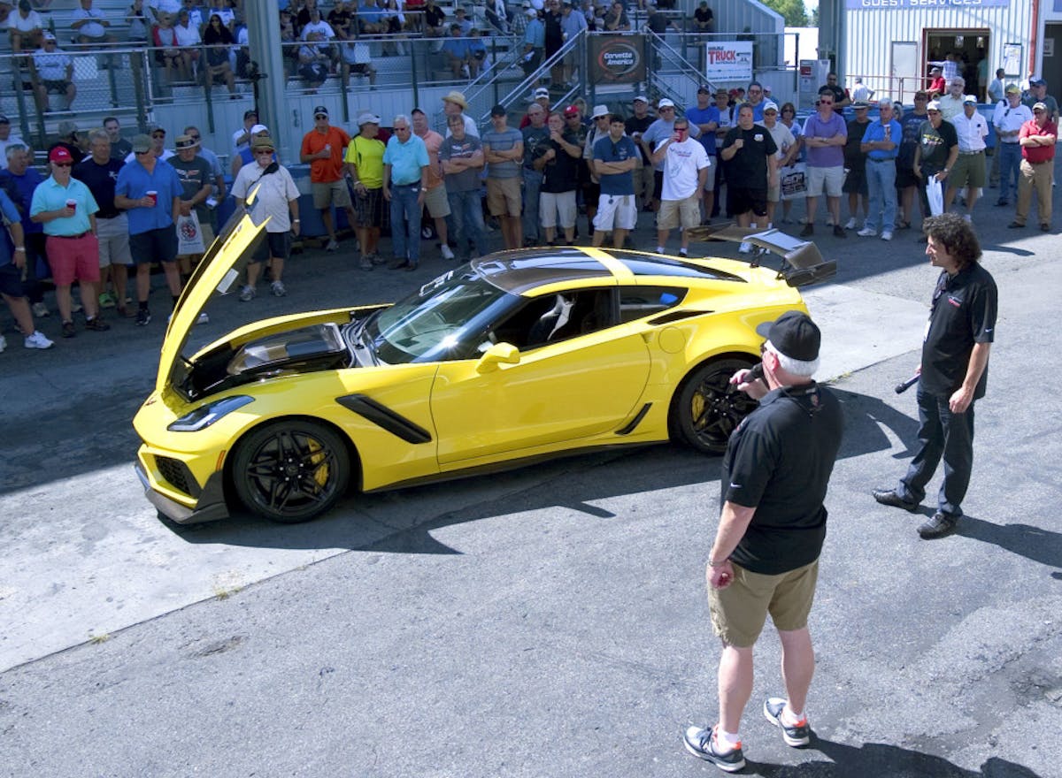 Team Chevrolet Product Manager Harlan Charles, along with another Team Chevrolet member address the audience and discuss the features of the 2019 Chevrolet Corvette ZR1.