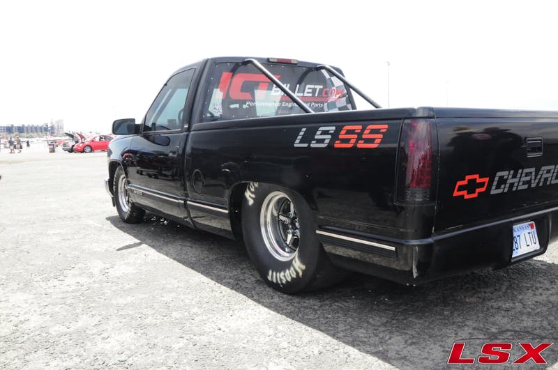 The drag strip was another hot commodity on the first day of LS Fest West. The staging lanes were fairly lite today as cars were coming in the gates and the going through the tech process for much of the day. We did get to see a few quick passes including Garrett Mitchell (Cleetus McFarland) as he piloted the legendary Leroy the Savage down the 1/4mile track running in the low 8-second range.