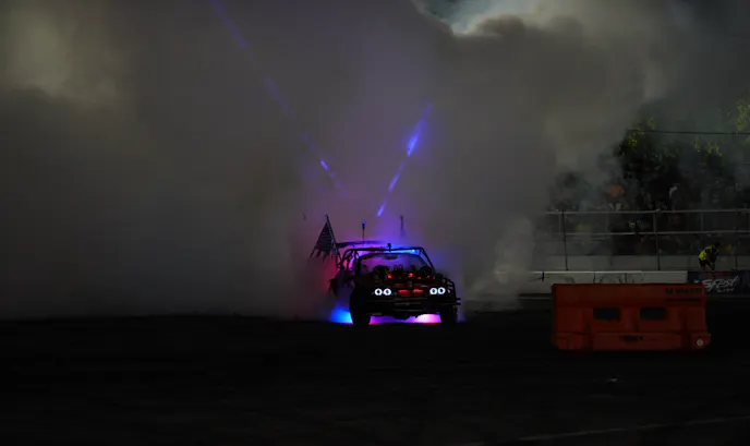 Of all the machines in the Burnout Wars competition, none turned heads quite like Frosty. So, we had to catch up with its driver, Seth Cavanaugh, and ask the obvious question: why Frosty? “I saw this thing laying in a field and I just thought ice cream truck when I saw it, and I knew it would completely stand out,” he explained.