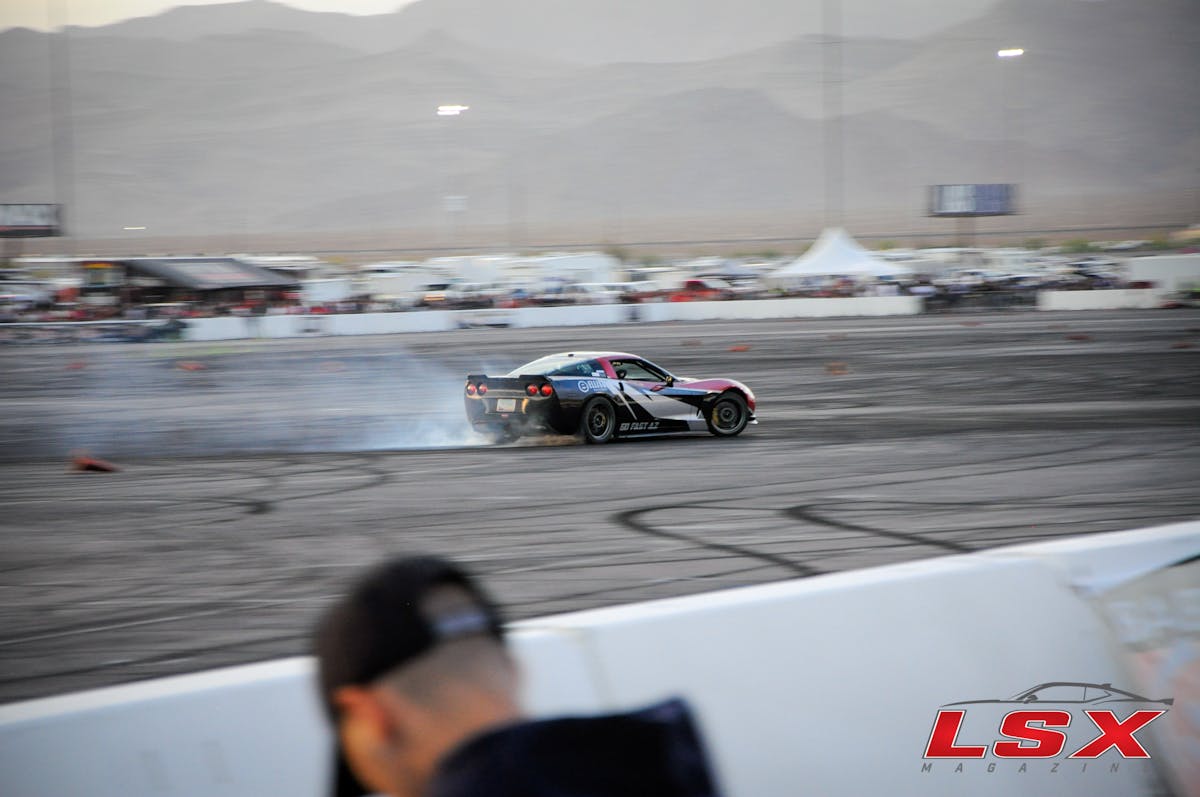 Another crowd favorite is the burnout contest, and this year at LS Fest contestants were allowed to use the entire pad for “burnouts,” making for more of a freestyle event. The first burnout contest was hosted by none other than Cleetus McFarland himself. Each competitor went out and did their best to blow the tires off the rims, and some succeeded while others had car problems. All in all, it was a fantastic display of tire smoke, carnage, and excellent driving skills.