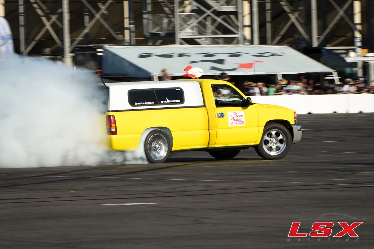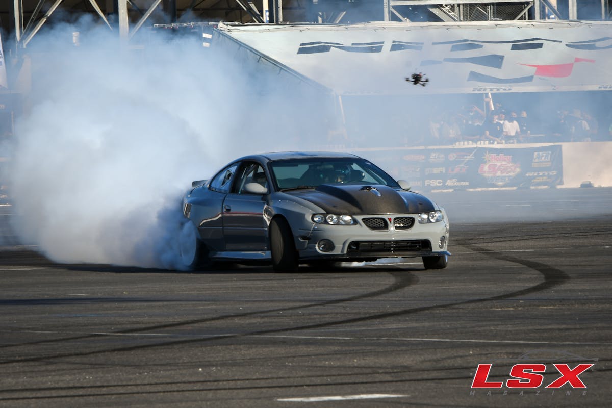 Another crowd favorite is the burnout contest, and this year at LS Fest contestants were allowed to use the entire pad for “burnouts,” making for more of a freestyle event. The first burnout contest was hosted by none other than Cleetus McFarland himself. Each competitor went out and did their best to blow the tires off the rims, and some succeeded while others had car problems. All in all, it was a fantastic display of tire smoke, carnage, and excellent driving skills.