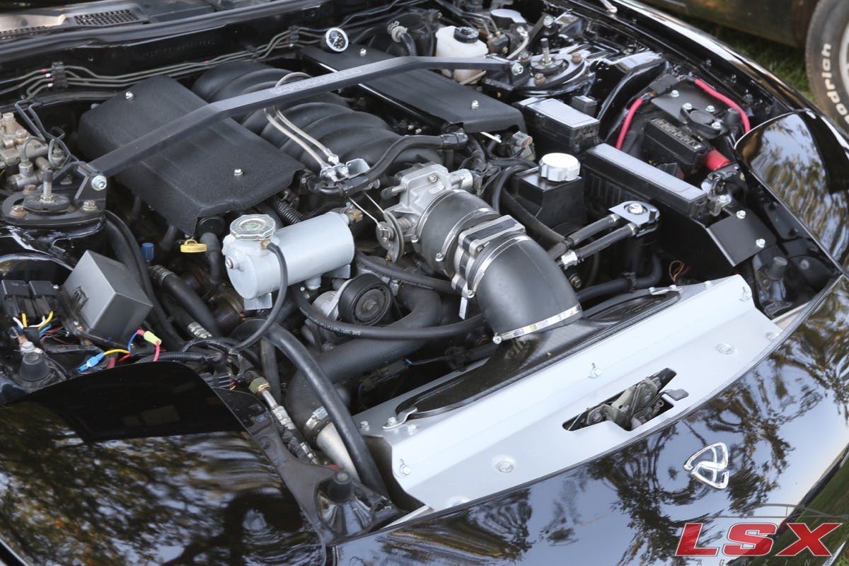 The Tuning School brought a 7-series BMW that ditched a V12 and added a turbocharged and forged LS1. Pro Fab is doing the fabrication and swap work, which you can see is still in progress.