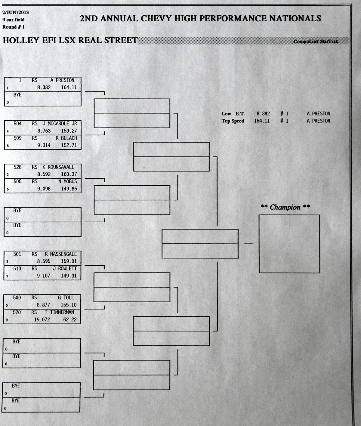 Adam Preston holds a two-tenths lead on the rest of the Real Street field – thanks to the 9-car ladder, he’ll get a competition bye in round 1 of eliminations tomorrow.