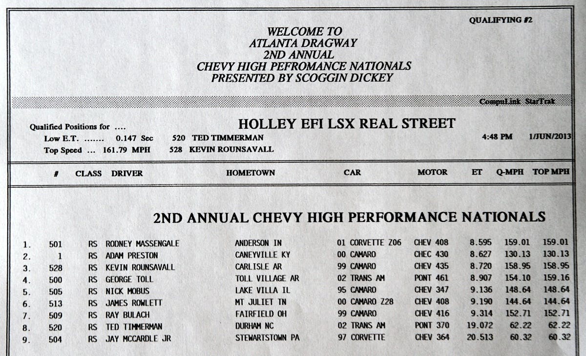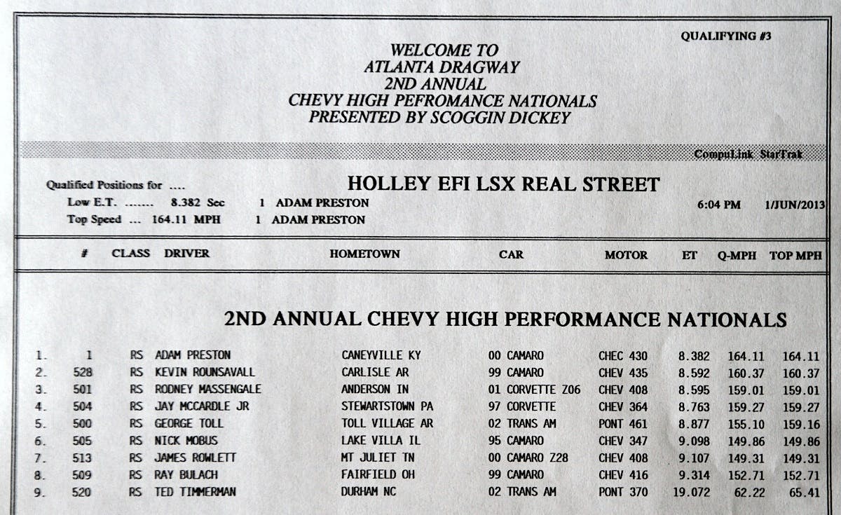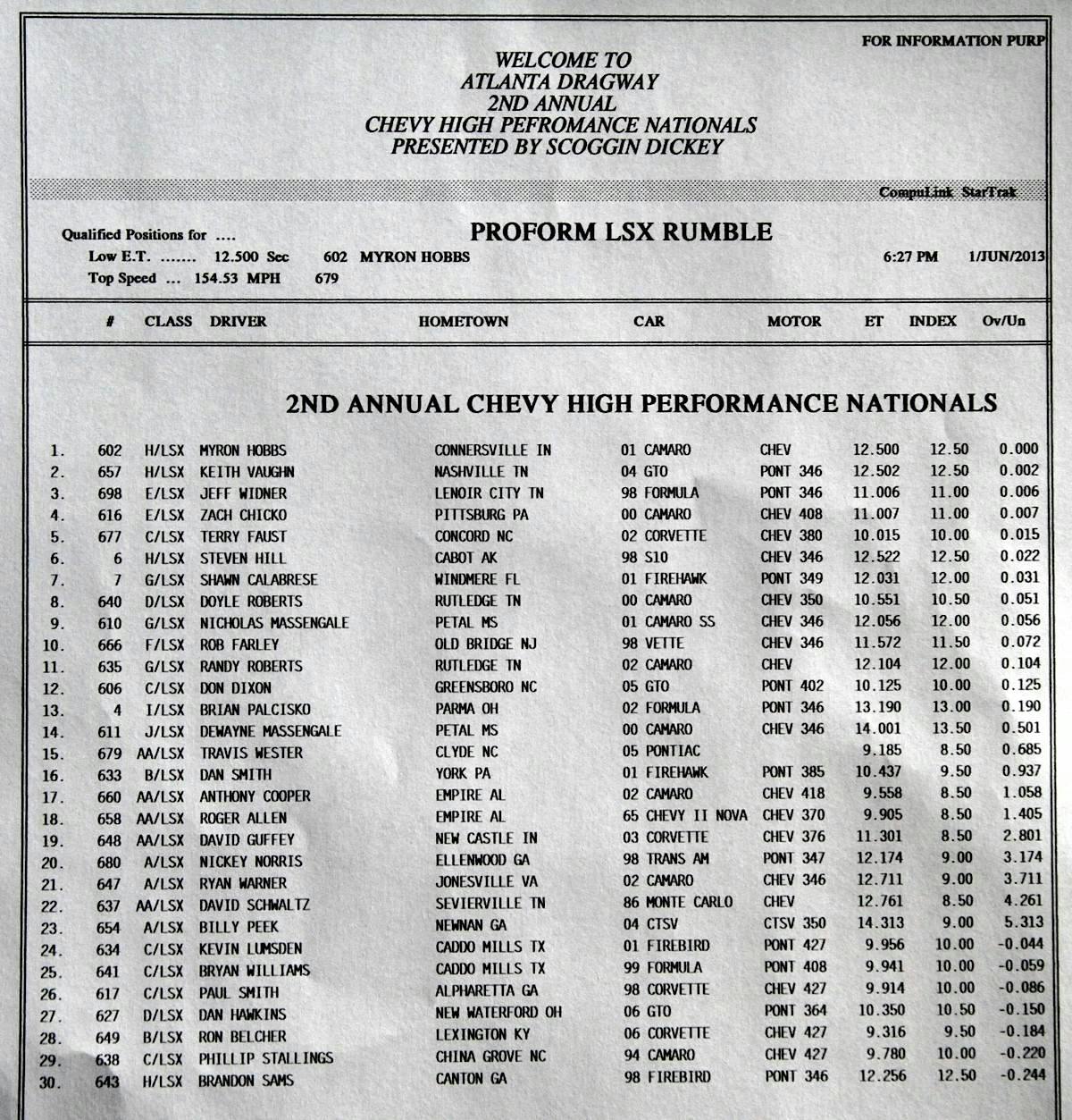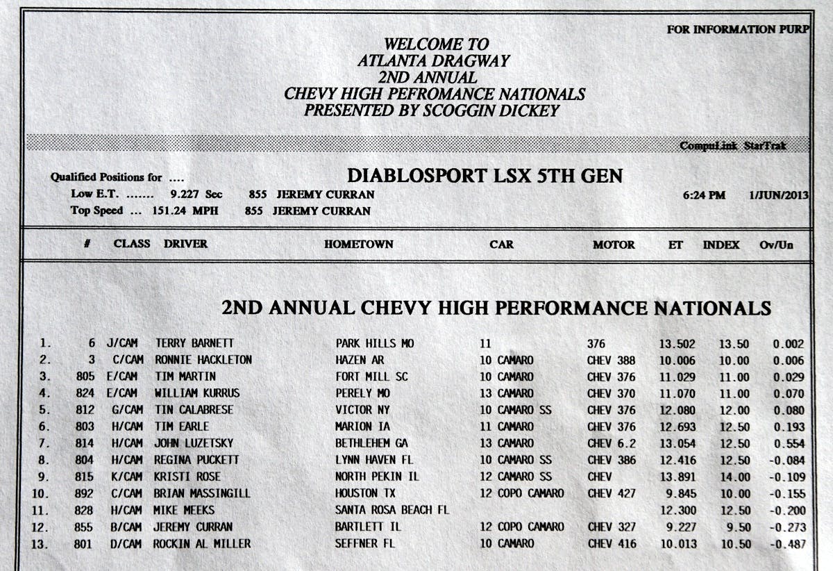 Round 2 of the 2013 LSX Challenge Series tour kicks off today at Atlanta Dragway in Commerce, Georgia, as part of the Chevy High Performance Nationals, and we’ll have boots on the ground all weekend long to bring you daily updates, photos, and news. The LSX Challenge incorporates three heads-up classes, the LSX Rumble index class, and the 5th Gen Camaro Challenge, so you can expect to see everything from LS-swapped daily driver Mustangs to some of the fastest drag radial cars in the world to make their way down the strip this weekend.