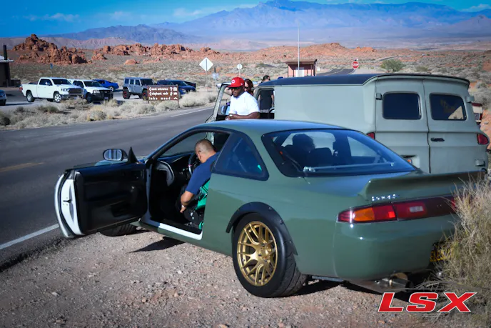 The LSX Magazine Valley of Fire Cruise kicked off today and was a fantastic scenic getaway. Even though it right outside of Las Vegas, you would never know it. Cars began showing up at three o’clock in the NASCAR parking lot, and we had a steady stream rolled in right up until our 4:00 departure. At 4:05, we headed out to the beautiful Valley of Fire state park. With about 35-40 cars in route, we made it to the park in about 30 minutes which made for an incredible drive.