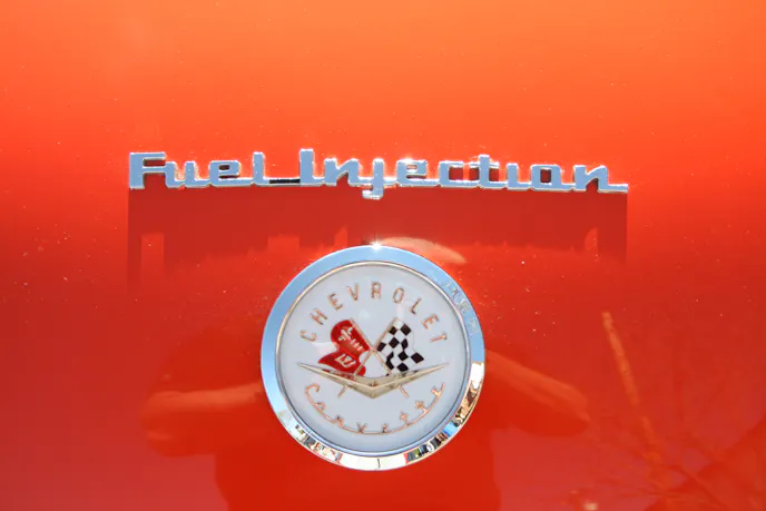 Placed along the main strip towards the front was an extremely clean, and quite rare, 1957 Fuelie, painted in a brilliant orange with white coves. This was the first year of the fuel-injected Vettes, and the last year of the single headlight C1s; quite a combination.