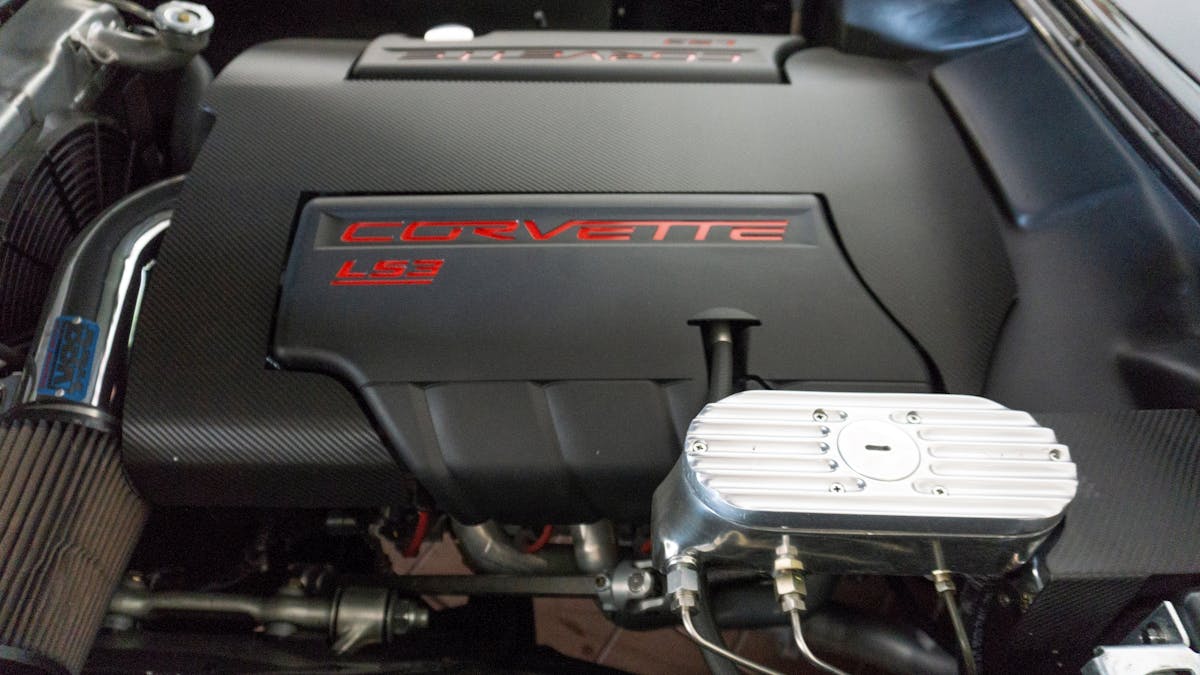 Under the hood is where the deviation from stock gets interesting. At first, you’ll notice the LS3 crate engine that churns out 430 horsepower. Beyond that, you can note that the car also has a completely updated frame which appears to be a Street Shop Inc. offering. It updates the chassis for late model drivetrains such as this LS3/4L60e configuration, but also includes (in this case) a C4-based chassis that uses coil-over shocks at each corner to keep the car at right height.