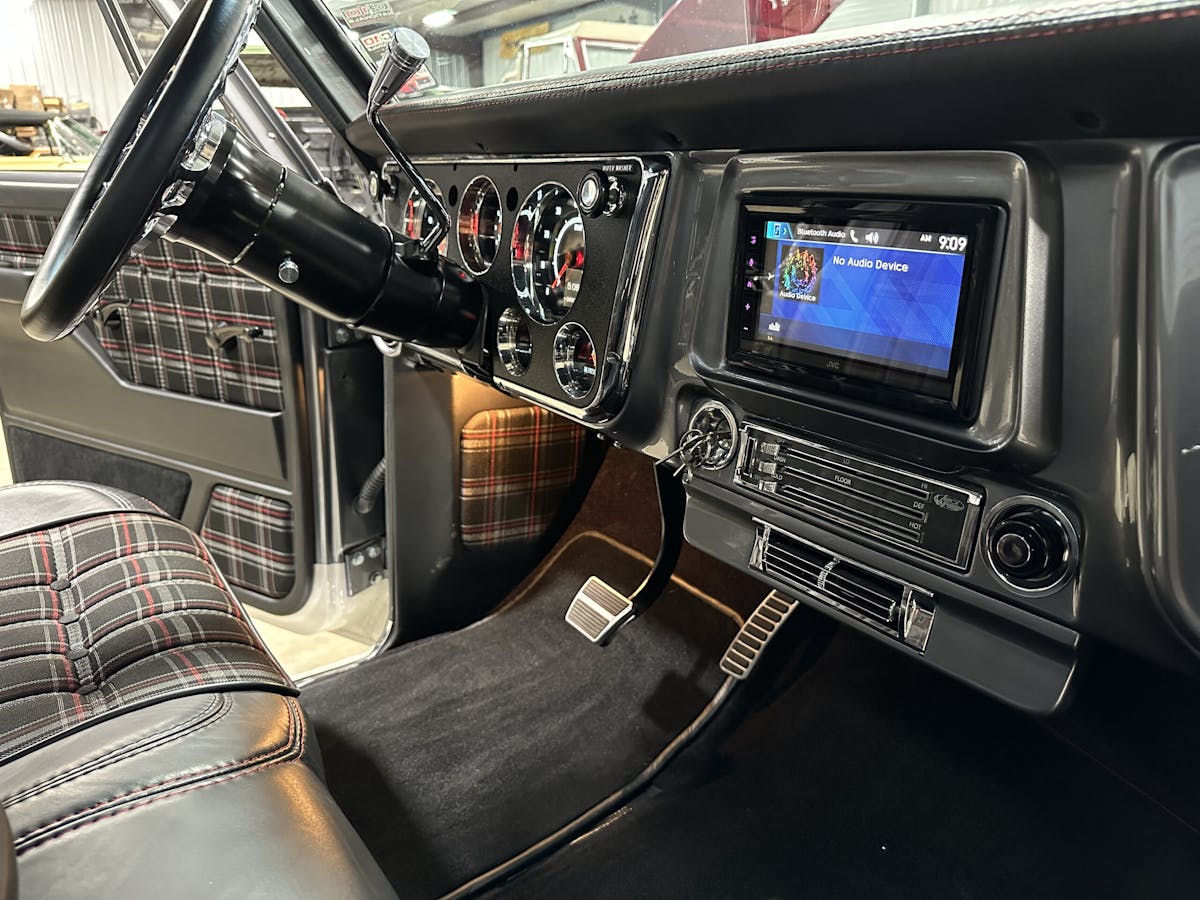 A JVC head unit powers a state-of-the-art sound system, complete with Rockford Fosgate speakers and subs, a 600-watt amp for the mid-range and tweeters, and a 1,000-watt amp for the subs, providing crystal-clear sound that perfectly complements the truck’s classic styling. Power windows and Dakota Digital gauges keep the driver up to date on the truck’s vital signs, while a Vintage Air system keeps the occupants cool and comfortable. Whether cruising down the highway or parked at a show, the truck’s interior is the perfect place to be.