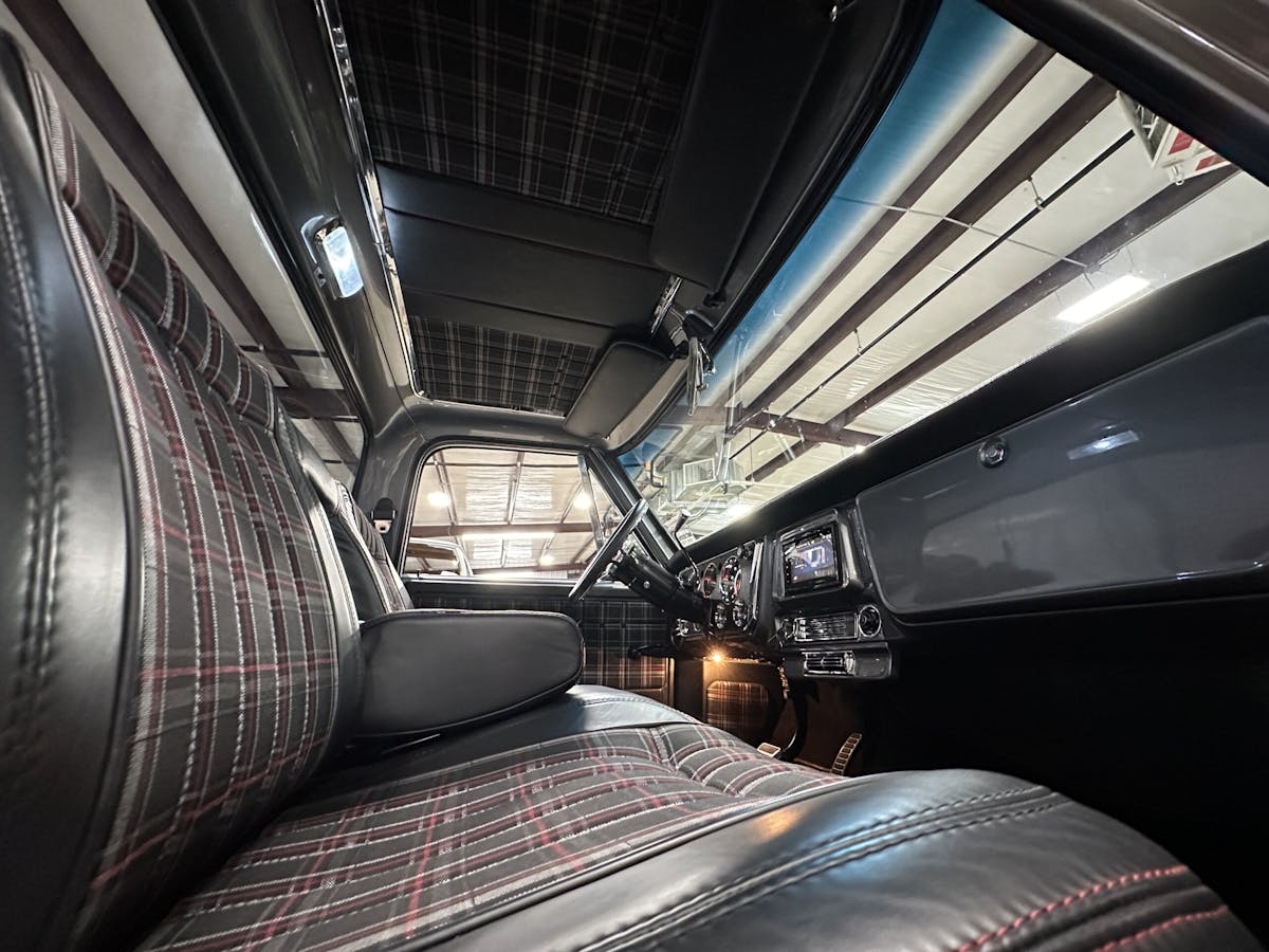 Power is sent to a rebuilt GM 12-bolt rearend with 3.73 gears and a locker, providing the traction and control needed to handle the truck with confidence. Stopping power comes courtesy of Wilwood four-wheel disc brakes, paired with a Classic Performance Products hydro-boost and Wilwood master cylinder, providing smooth, confident stopping power. The truck’s suspension has been upgraded with Porterbuilt front control arms and rear trailing arms, along with an Accuair air ride system and Ridetech shocks, providing a smooth and responsive ride. Whether cruising down the highway or navigating twisty back roads, the truck handles with the precision and poise of a modern performance vehicle.