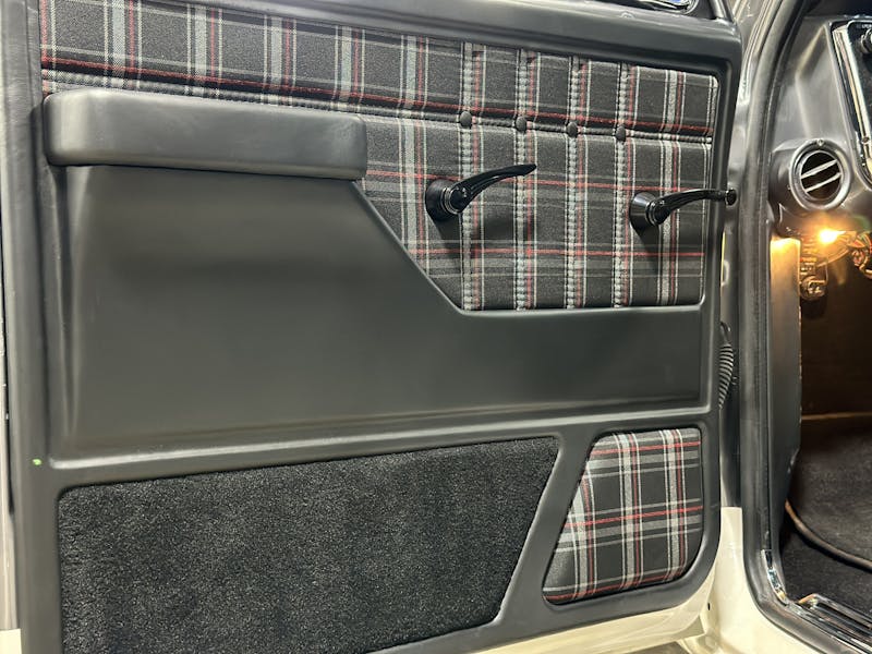 Inside, the truck features a custom interior crafted in-house by the skilled artisans at Nobody Customs. The seats, custom-built door panels, kick panels, and speaker box behind the seat are all adorned in lush leather with cloth inserts, creating a cabin that is as luxurious as it is comfortable.
