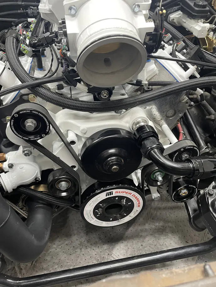 - Custom homemade cold side piping, powder coated white by JC’s Powdercoating