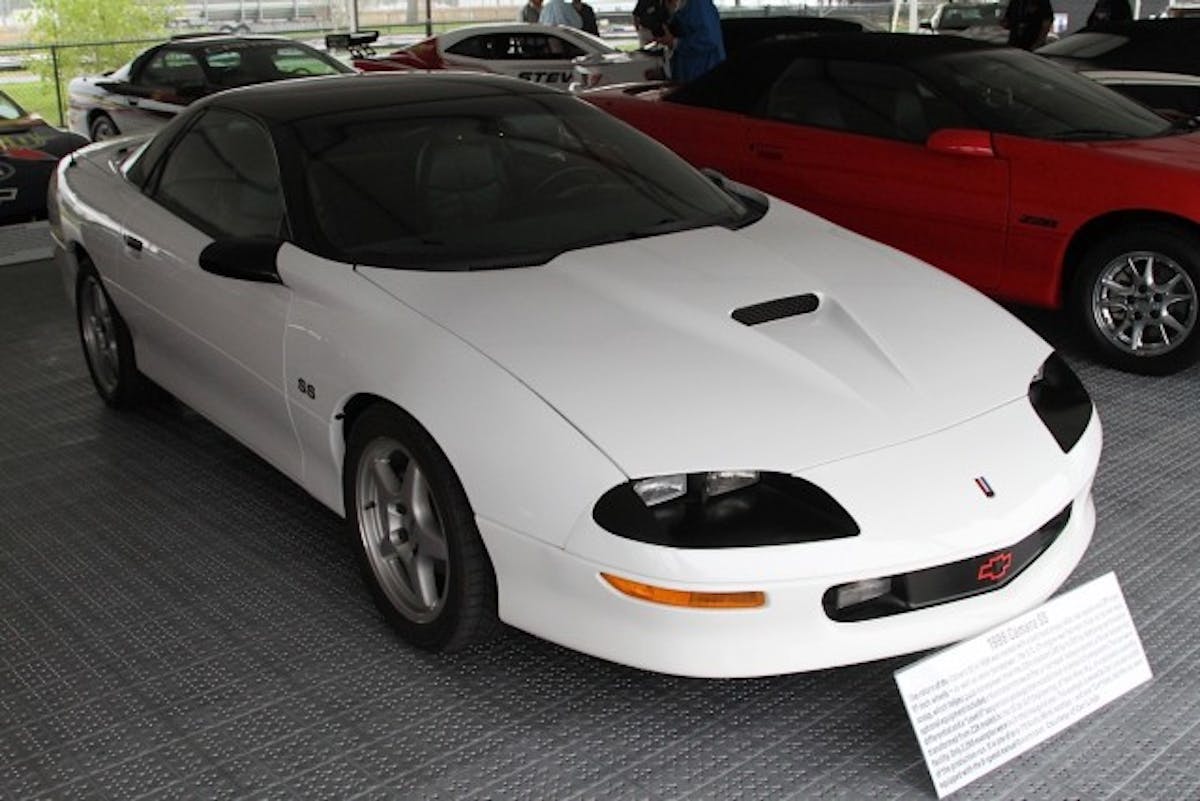 When the Camaro SS returned in 1996, its hood scoop, taller rear spoiler, and ZR1-style 17-inch wheels were the telltale signs that it meant business. The hood scoop, which helped the car’s 285 horsepower 5.7-liter V8 source more fresh air, also upped the power by 20 ponies. Other optional performance equipment included a cat-back exhaust system, Hurst short-throw shifter, Torsen limited-slip differential, and a “Level II” suspension package that included track-oriented 1LE components. To transform the Z/28 cars to SS models, they were shipped to SLP Engineering in Toms River, New Jersey.