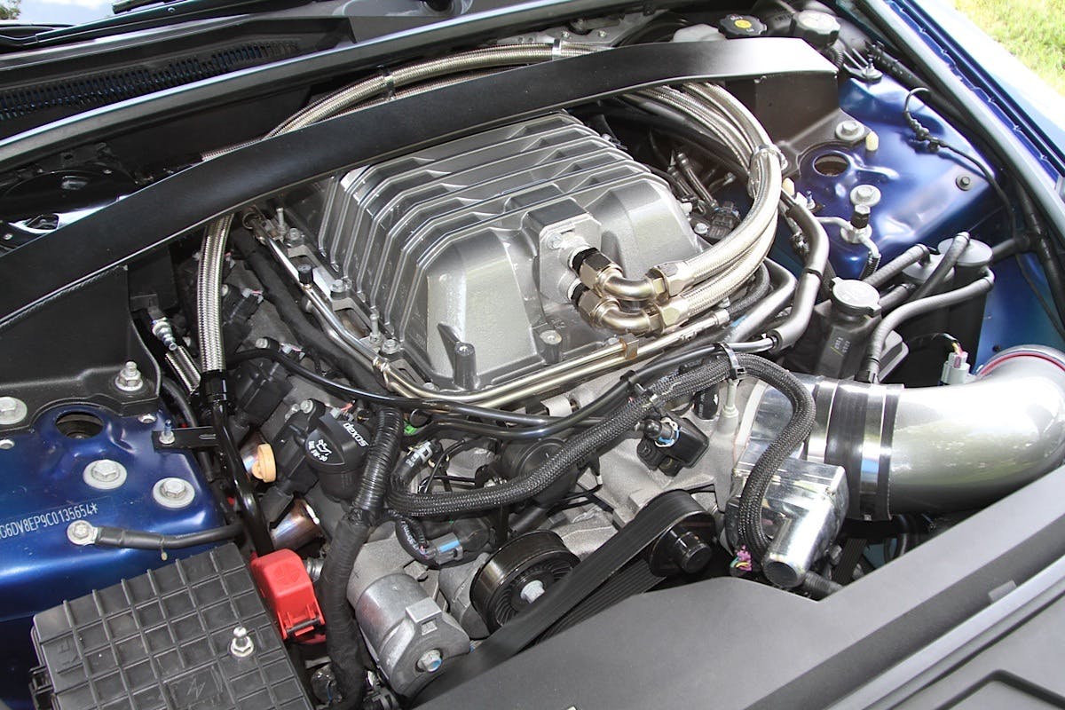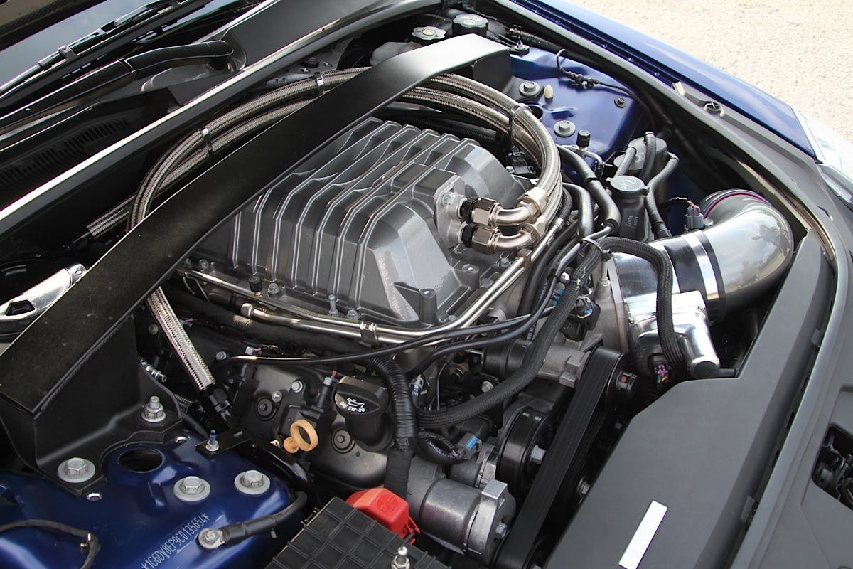 Miller also had the supercharger snout ported and added a ZL1 lid to squeeze out some extra power. To add a little flare under the hood, Eric Nash powdercoated the lid and intake tube in a nice silver/grey color. To keep the supercharger happy and ensure that temps stay low under the hood, a Weapon X double-wide heat exchanger is employed.